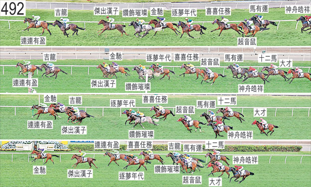 「逐夢年代」出閘僅屬一般,在直路上內閃。「神舟皓祥」自外檔出閘笨拙,觸碰閘廂左側,繼而於早段在馬群之後切入。「大才」自外檔出閘後於早段在馬群之後切入。「十二馬」自大外檔出閘後同樣於早段在馬群之後切入。「超音鼠」於中段收慢以取得遮擋時在走勢欠順之際昂首。接近九百米處時,「馬有運」在靠近「逐夢年代」後蹄的位置搶口之際昂首。「喜喜任務」於中段外閃。賽後,嘉里(「神舟皓祥」)報告,坐騎在直路上外閃及難以被力策。同樣於賽後,巴度報告,儘管「大才」自八百米處起受力策,但毫無反應,走勢令人失望。獸醫於賽後立即檢查「吉龍」,發現該駒流鼻血。獸醫於賽後立即檢查「大才」,並無發現任何明顯異常之處。「金馳」及「傑出漢子」均須抽取樣本檢驗。