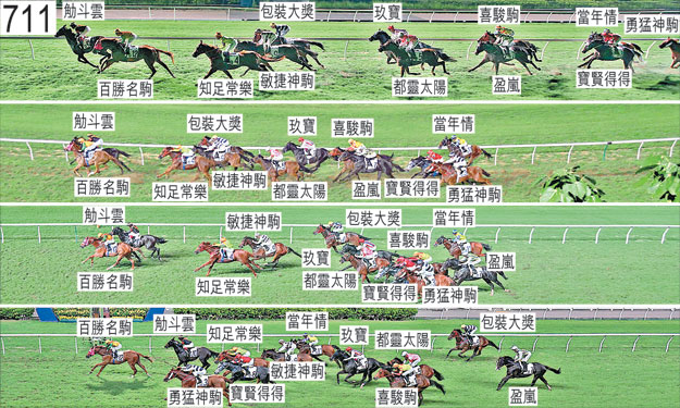 「當年情」出閘僅屬一般。 「盈嵐」於起步時被向外斜跑的「喜駿駒」擠壓。 「勇猛神駒」出閘緩慢,於早段在馬群之後切入。 接近千三米處時,「當年情」在一度受向內斜跑的「盈嵐」擠壓時收慢。 趨近二百米處時,「盈嵐」在「寶賢得得」與「喜駿駒」(布文)之間受擠迫之際收慢,當時「喜駿駒」推進至「都靈太陽」外側的窄位後被該駒略為帶向外跑。小組告誡布文須加倍小心。 「知足常樂」大部分途程上走外疊,沒有遮擋。 賽後,潘頓(「敏捷神駒」)表示,他獲指示讓坐騎是晚佔取較為前列的位置,因為馬主及練馬師覺得坐騎難以自馬群後方追前。他又報告,坐騎在陣上發出異常呼吸聲。練馬師黎昭昇確認他發出的指示。獸醫於賽後立即檢查「敏捷神駒」,並無發現任何明顯異常之處。 獸醫於賽後立即檢查「玖寶」及「當年情」,並無發現任何明顯異常之處。 獸醫於賽後立即檢查「知足常樂」,發現該駒左後腿不良於行。「知足常樂」必須通過獸醫檢驗後,才可再次出賽。 「知足常樂」、「百勝名駒」及「勇猛神駒」均須抽取樣本檢驗。