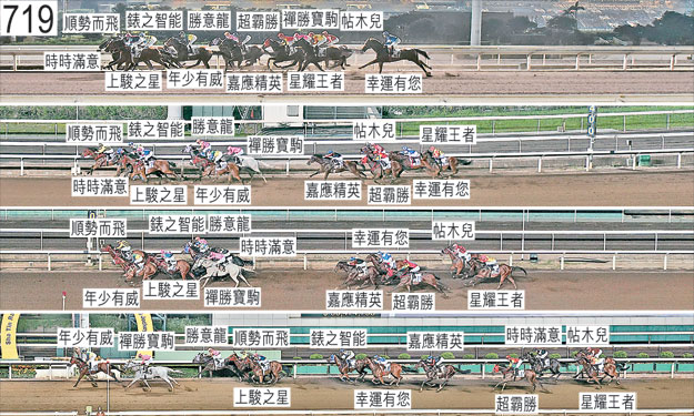 「嘉應精英」於躍出時觸碰閘廂左側。「順勢而飛」及「上駿之星」均於躍出時俯首前跪。「超霸勝」於起步時受向內斜跑的「時時滿意」擠迫。「幸運有您」自外檔出閘笨拙,其後於早段在馬群之後切入。「帖木兒」於早段搶口,接近八百米處時在「嘉應精英」之後昂首。賽後,班德禮(「超霸勝」)報告,坐騎於中段自八百米處起轉彎時外閃。被查詢有關「上駿之星」居前競跑時,潘頓表示,他獲指示讓坐騎自大外檔出閘後保持居前列位置。他說,坐騎儘管於早段受催策,但須走外疊,而居坐騎內側的「時時滿意」未能超越其內側的馬匹,坐騎因而須在大部分途程上在沒有遮擋下走外疊。練馬師沈集成確認他發出的策騎指示。賽後,見習騎師鍾易禮(「時時滿意」)報告,他獲發的指示是讓坐騎上前及嘗試超越內側的馬匹。他說,坐騎未能展現足夠前速以做到這點,因而大部分途程在沒有遮擋下走外疊,其後於直路上墮退。獸醫於賽後立即檢查「時時滿意」,並無發現任何明顯異常之處。獸醫於賽後立即檢查「超霸勝」,並無發現任何明顯異常之處。「年少有威」及「禪勝寶駒」均須抽取樣本檢驗。