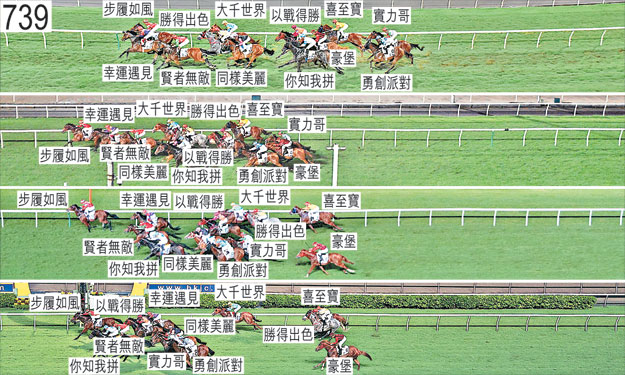 「豪堡」於起步時向外斜跑,碰撞「實力哥」,兩駒因而雙雙失去平衡。「同樣美麗」與「步履如風」於起步時互相碰撞。「賢者無敵」於起步後不久向內斜跑,碰撞「你知我拼」。「豪堡」於中段搶口。接近五百米處時,跑來搶口的「喜至寶」在收慢避開「大千世界」之際向內斜跑及碰撞內欄。接近二百五十米處時,傾向內閃的「以戰得勝」向內斜跑,碰撞「勝得出色」,「喜至寶」因而受阻礙。「賢者無敵」於末段在催策下向外斜跑,導致騎師布文須於趨近終點時修正坐騎。因此,「你知我拼」與「賢者無敵」緊迫競跑,這限制了「你知我拼」的騎師何澤堯於末段對坐騎用鞭。居於「你知我拼」與「賢者無敵」之間的「同樣美麗」因而未能被力策至終點。「賢者無敵」及「你知我拼」大部分途程均在沒有遮擋下走外疊。賽後,田泰安(「幸運遇見」)報告,坐騎在居領放馬外側時過於搶口,因而於末段未能如預期般以佳勢衝刺。獸醫於賽後立即檢查「幸運遇見」,並無發現任何明顯異常之處。獸醫於賽後立即檢查「勝得出色」及「喜至寶」,並無發現任何明顯異常之處。「幸運遇見」、「步履如風」及「你知我拼」均須抽取樣本檢驗。