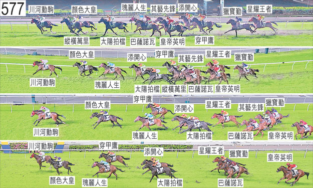 「星耀王者」自外檔出閘後於早段在馬群之後切入。 「顏色大皇」賽後須抽取樣本檢驗。 「巴薩諾瓦」大部分途程在沒有遮擋下走外疊。 「添開心」賽後,艾道拿表示,他賽前打算讓坐騎居前競跑,但坐騎出閘僅屬一般,而儘管他於早段催策坐騎,但坐騎未能展現足夠前速以居於更為靠前的位置。 「縱橫萬里」賽後,霍宏聲表示,他於轉直路彎時覺得坐騎或有不妥,遂收慢坐騎。賽後立即接受獸醫檢查,並無發現任何明顯異常之處。「縱橫萬里」包尾大敗而回,小組認為此駒的表現難以接受。「縱橫萬里」必須試閘及格,並且通過獸醫檢驗後,才可再次出賽。 「穿甲鷹」起步時發生碰撞。 「太陽拍檔」起步時發生碰撞。 「川河動駒」賽後須抽取樣本檢驗。 「其藝先鋒」出閘笨拙。 「獵寶勤」自外檔出閘後於早段在馬群之後切入。 「皇帝英明」賽後,班德禮表示,他能夠讓自大外檔出閘的坐騎佔取中間位置。他表示,坐騎於轉直路彎時在迅速墮退的「縱橫萬里」之後受困之際失去步韻。他又說,坐騎於入直路時移出外疊,其後衝刺僅屬一般,他將此歸咎於直路彎發生的事件及坐騎是晚升班角逐第三班賽事。賽後立即接受獸醫檢查,並無發現任何明顯異常之處。