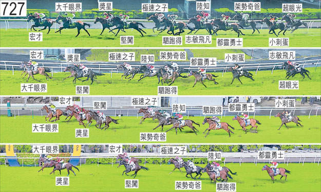 「陸知」出閘僅屬一般,其後不久受擠迫。 「大千眼界」賽後須抽取樣本檢驗。 「堅闖」賽後須抽取樣本檢驗。 「駟跑得」在沒有遮擋下走外疊直至接近八百米處。 「都靈勇士」自過了七百米處起在沒有遮擋下走外疊。賽後立即接受獸醫檢查,並無發現任何明顯異常之處。 「架勢奇爸」早段在馬群之後切入時在靠近「小刺蛋」之際昂首。末段內閃,趨近終點時被騎師艾道拿修正。 「超眼光」賽後立即接受獸醫檢查,並無發現任何明顯異常之處。 「獎星」賽後須抽取樣本檢驗。 「志敏飛凡」起步時發生碰撞。賽後立即接受獸醫檢查,並無發現任何明顯異常之處。 「極速之子」起步時發生碰撞。早段搶口,趨近千四米處時在一段途程上在收慢避開「獎星」之際昂首。跑離千三米處時在「都靈勇士」內側緊迫競跑之際觸碰內欄。