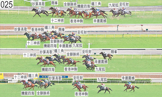 「香港神駒」過了千一米處後收慢避開「翹峯」,其後在一段途程上搶口。 「翹峯」周俊樂因於過了千一米處後造成干擾而承認一項不小心策騎(見「金獅勝將」)。賽後,周俊樂報告,賽前打算替坐騎尋找遮擋,但坐騎於早段搶口,他因而讓坐騎切入領放。他續說,坐騎在直路上對催策毫無反應,表現令人失望。賽後立即接受獸醫檢查,內窺鏡檢查發現此駒的氣管內有很多血。。小組認為與近仗相比,「翹峯」今仗的表現令人失望。「翹峯」必須試閘及格,並且通過獸醫檢驗後,才可再次出賽。 「鐵三角」抵達起步點後被發現右後球節輕微擦傷。其後接受獸醫檢查,獸醫認為此駒適宜出賽。出閘笨拙。接近八百米處時在一段途程上搶口及收慢避開「金獅勝將」。 「十二神將」出閘僅屬一般。賽後須抽取樣本檢驗。 「幸運震撼」賽後,田泰安報告,坐騎全程走勢欠順,他對坐騎於末段衝刺的表現感到失望。練馬師羅富全表示,此駒於九月三日的試閘表現令他滿意,他能提供的唯一解釋是此駒或未能在千四米途程上交出好表現。賽後立即接受獸醫檢查,內窺鏡檢查顯示此駒的氣管內有很多血。小組認為與上仗相比,「幸運震撼」今仗的表現令人失望。「幸運震撼」必須試閘及格,並且通過獸醫檢驗後,才可再次出賽。賽後須抽取樣本檢驗。 「騰龍四海」自九百米處起在沒有遮擋下走外疊。賽後須抽取樣本檢驗。 「金獅勝將」周俊樂(「翹峯」)承認一項不小心策騎〔賽事規例第100(1)條〕,事緣於過了千一米處後,他容許坐騎在尚未帶離「香港神駒」下向內斜跑,「香港神駒」因而被帶向內側的「金獅勝將」,導致「金獅勝將」不必要地受擠迫及勒避。小組判罰周俊樂於九月二十八日星期六沙田賽事停賽(一個香港賽馬日)。在衡量判罰輕重時,小組裁定周俊樂的不小心策騎程度屬第二級,以及影響情況屬第二級,也考慮了他的極佳策騎出賽紀錄。自四百五十米處起受困而未能望空直至二百五十米處。 「至旺財」自外檔出閘時發生碰撞,其後於早段在馬群之後切入。 「九尾狐」賽後立即接受獸醫檢查,並無發現任何明顯異常之處。 「千里如飛」九月十四日被小組按照獸醫意見(右前腿不良於行)著令退出。「千里如飛」必須通過獸醫檢驗後,才可再次出賽。