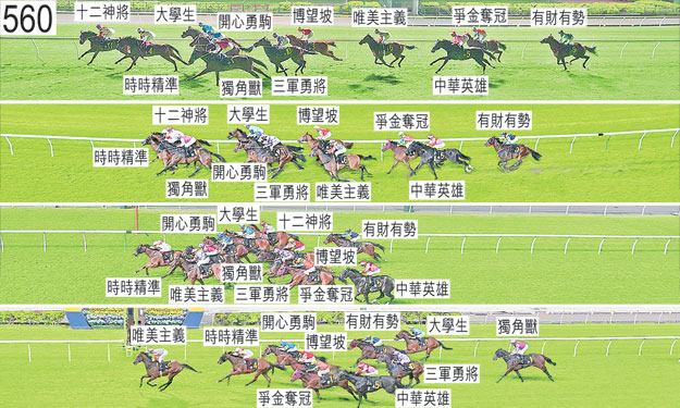 「獨角獸」賽後,布文表示,坐騎於接近一千米處時開始搶口,他因而選擇讓坐騎展步上前。他說,坐騎未能展現足夠前速以超越內側的馬匹,因而其後須在沒有遮擋下走外疊。他又說,由於坐騎走外疊及搶口,因此在直路上受催策時墮退。賽後立即接受獸醫檢查,並無發現任何明顯異常之處。小組認為與近仗相比,「獨角獸」今仗的表現令人失望。「獨角獸」必須試閘及格,並且通過獸醫檢驗後,才可再次出賽。 「博望坡」接近千四米處時在受「三軍勇將」擠迫之際收慢,當時「三軍勇將」被在尚未帶離下向內移入的「開心勇駒」(鍾易禮)帶向內跑。小組譴責鍾易禮。四百米處至二百米處之間受困而未能望空。趨近五十米處時在「時時精準」內側未能望空,收慢及移至該駒外側以繼續望空。 「時時精準」躍出時觸碰閘廂右側,向外斜跑及與「中華英雄」互相碰撞。賽後須抽取樣本檢驗。 「中華英雄」躍出時發生碰撞。 「唯美主義」躍出時發生碰撞。賽後須抽取樣本檢驗。 「爭金奪冠」自外檔出閘僅屬一般,早段在馬群之後切入。 「大學生」起步時俯首前跪。賽後立即接受獸醫檢查,並無發現任何明顯異常之處。 「有財有勢」自外檔出閘後於早段在馬群之後切入。 「三軍勇將」中段搶口,不願穩定走勢。接近千二米處時在一段途程上在收慢避開「開心勇駒」之際昂首。 「十二神將」賽後立即接受獸醫檢查,並無發現任何明顯異常之處。