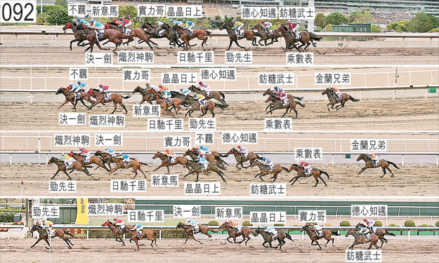 「德心知遇」賽後,布文表示,坐騎居後列競跑,其後於二百米處至一百米處之間在向外斜跑的「實力哥」之後受困之際未能上前。賽後立即接受獸醫檢查,並無發現任何明顯異常之處。 「乘數表」出閘僅屬一般。 「晶晶日上」接近七百米處時與「日馳千里」雙雙斜跑,因而與該駒互相觸碰。 「實力哥」接近七百五十米處時受「新意馬」(希威森)擠迫之際失去平衡,當時「新意馬」向內斜跑,其後被騎師修正。小組譴責希威森,並告誡他應更早採取行動以舒緩對「實力哥」的緊迫。小組在評估此宗事件時,也考慮到「新意馬」向內斜跑避開「熾烈神駒」。賽後立即接受獸醫檢查,發現此駒右前腿不良於行。「實力哥」必須通過獸醫檢驗後,才可再次出賽。 「日馳千里」接近七百米處時與「晶晶日上」雙雙斜跑,因而與該駒互相觸碰。 「勁先生」賽後須抽取樣本檢驗。 「不羈」抵達起步點後被發現口內有血,其後接受獸醫檢查,獸醫認為此駒適宜出賽。 「金蘭兄弟」自大外檔出閘後於早段在馬群之後切入。 「鈁糖武士」出閘僅屬一般。 「熾烈神駒」接近三百米處時被向外斜跑的「決一劍」碰撞。賽後須抽取樣本檢驗。 「決一劍」接近三百米處時發生碰撞。