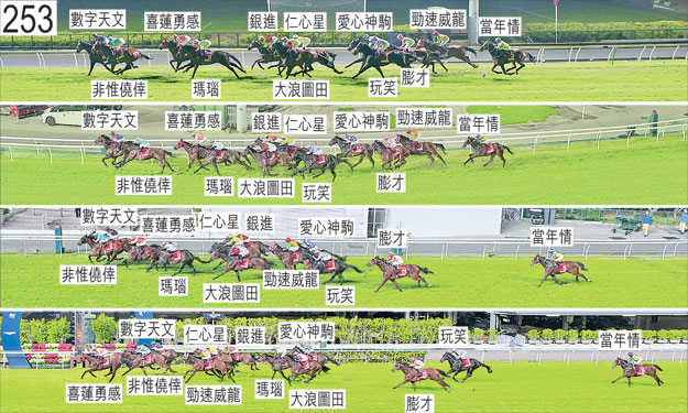 | 「玩笑」麥道朗未能就坐騎令人失望的表現提供任何解釋。賽後立即接受獸醫檢查,並無發現任何明顯異常之處。 「勁速威龍」自外檔出閘僅屬一般,早段在馬群之後切入。 「喜蓮勇感」賽後須抽取樣本檢驗。 「大浪圖田」大部分途程在沒有遮擋下走外疊。賽後立即接受獸醫檢查,並無發現任何明顯異常之處。 「非惟僥倖」賽後須抽取樣本檢驗。 「瑪瑙」末段在「仁心星」與「勁速威龍」(巴米高)之間受擠迫之際收慢,當時「勁速威龍」向內斜跑,繼而被騎師修正。小組告誡巴米高須加倍小心。 「膨才」何澤堯未能就坐騎令人失望的表現提供任何解釋。練馬師蘇偉賢表示,此駒於是賽前的表現令他滿意,而他未能就此駒的表現提供任何解釋。他說,他現時考慮讓此駒下仗縮程角逐。賽後立即接受獸醫檢查,並無發現任何明顯異常之處。 「愛心神駒」自外檔出閘僅屬一般,早段在馬群之後切入。跑離一百米處時在「瑪瑙」與「仁心星」之間受擠迫之際收慢,當時「瑪瑙」向內斜跑避開「勁速威龍」,而「仁心星」(李寶利)則略為向外斜跑。小組告誡李寶利須加倍小心。