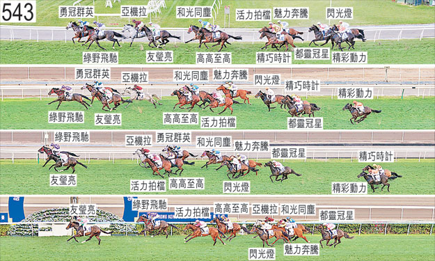 「魅力奔騰」趨近三百米處時在一段短途程上在移至「和光同塵」外側之際難以望空。 「綠野飛馳」直路上內閃。賽後須抽取樣本檢驗。 「勇冠群英」起步時發生碰撞。賽後立即接受獸醫檢查,並無發現任何明顯異常之處。 「亞機拉」賽後立即接受獸醫檢查,並無發現任何明顯異常之處。 「活力拍檔」最後二百米內閃。 「閃光燈」抵達閘廂後被發現失去左前蹄的蹄鐵,其後重新裝上蹄鐵並接受獸醫檢查,獸醫認為此駒適宜出賽。自大外檔出閘後於早段在馬群之後切入。 「和光同塵」躍出時觸碰閘廂右側,因而失去平衡。直路上內閃。 「友瑩亮」賽後須抽取樣本檢驗。 「精巧時計」出閘笨拙,向內斜跑及與「勇冠群英」互相觸碰。大部分途程在沒有遮擋下走外疊。 「精彩動力」自外檔出閘後於早段在馬群之後切入。 「都靈冠星」早段沿途搶口,接近一千米處時在一段途程上收慢避開「活力拍檔」。班德禮表示,坐騎居於較預期為後的位置,直路上難以自該處起追前。賽後立即接受獸醫檢查,並無發現任何明顯異常之處。