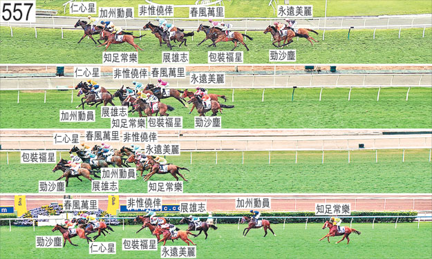 「加州動員」起步時向外斜跑,其後被騎師修正。布文表示,坐騎於早段佔取領放馬「仁心星」外側的位置,繼而在「知足常樂」推進至其外側之際不利發揮。他說,坐騎因而在直路上墮退。賽後立即接受獸醫檢查,發現此駒右前腿不良於行。「加州動員」必須通過須包括額外診斷評估的獸醫檢驗後,才可再次出賽。 「永遠美麗」躍出時被「加州動員」帶往外跑。賽後被發現失去左前蹄的蹄鐵。 「非惟僥倖」四百米處至一百米處之間嚴重受困而未能望空。 「知足常樂」大部分途程在沒有遮擋下走外疊。 「展雄志」潘頓表示,坐騎於早段及中段沿途過於搶口,因而在直路上衝刺僅屬一般。賽後立即接受獸醫檢查,並無發現任何明顯異常之處。 「春風萬里」出閘僅屬一般。趨近三百米處時在「仁心星」之後受困而未能望空。賽後須抽取樣本檢驗。 「仁心星」霍宏聲報告,坐騎沿途外閃,直路上受催策時向外斜跑,接近二百五十米處時移離內欄。 「勁沙塵」賽後須抽取樣本檢驗。